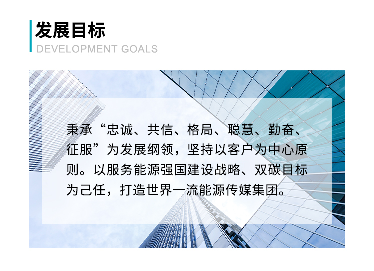 秉承“忠誠、共信、格局、聰慧、勤奮、征服”為發(fā)展綱領,堅持以客戶為中心原則。以服務能源強國建設戰(zhàn)略、雙碳目標為己任,打造世界一流能源傳媒集團。